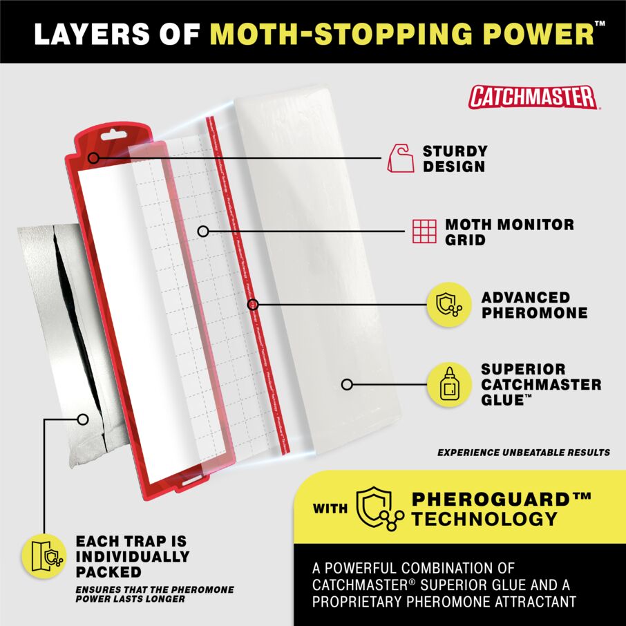 CatchmasterGRO Pantry Moth Traps, 6-pack for kitchen pantry, storage cabinets, and food storage areas